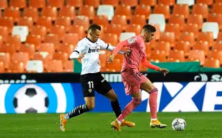 Denis Cheryshev of Valencia CF and Federico, Fede Valverde of Real Madrid  during the La Liga Santander mach between Valencia and Real Madrid at Estadio de Mestalla on November 8, 2020 in Valencia, Spain