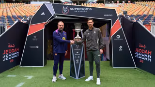 El técnico alemán, que estrenó su palmarés como azulgrana precisamente en Arabia Saudí y que podría alzar su cuarto trofeo con el Barça, y el preparador blanco, que busca su primer título con su equipo, llevaron a cabo el ya tradicional encuentro entre entrenadores en el escenario del partido y compartieron impresiones en vísperas del duelo.