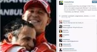 "Estoy rezando a Dios que te proteja hermano!! Y que tengas una rápida recuperación Michael", escribió Felipe Massa en su cuenta oficial de la red social 'twitter'.