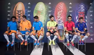 Los modelos 'Adizero f50', en color azul; 'Nitrocharge', en verde; 'Predator', en rosa; y '11Pro', en morado, todas ellos tonos inspirados en Brasil, fueron lucidos por los jugadores del Real Madrid para realizar la presentación con posterior exhibición, en un acto en el que también participaron 26 niños que pudieron realizar los mismos ejercicios que sus ídolos.