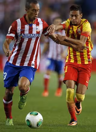Neymar y Miranda en el Atlético - Barcelona de Supercopa