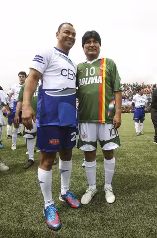 Evo Morales Con Traje De Futbolista Junto A Cafu (Brasil)