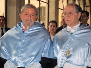Lula da Silva (izquierda) en la USAL junto al padrino en la ceremonia.