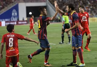 El FC Barcelona cerró su primer partido de la gira asiática con goleada ante la selección de Tailandia (1-7) en el Rajamangala National Stadium de Bangkok, en un partido que evidenció que la sociedad Neymar-Messi comienza a carburar y en el que el astro brasileño convirtió su primer gol con la camiseta azulgrana.
