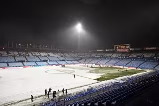 La nieve cubre el césped del estadio del Real Zaragoza, la Romareda, a 19 de enero de 2024, en Zaragoza, Aragón (España). El encuentro, planificado para este viernes 19 de enero a partir de las 20.30, se atrasó primero y se suspendió después tras la ins - Marcos Cebrián - Europa Press