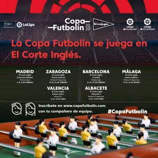 LaLiga y El Corte Inglés han anunciado este viernes la creación de la 'Copa Futbolín El Corte Inglés', una gira para conocer a los mejores especialistas de esta modalidad que se disputará entre los meses de febrero y abril a lo largo de seis ciudades españoles.