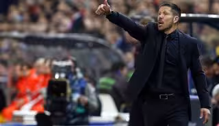 Diego Simeone en el partido ante el AC Milan en los octavos de Champions