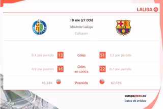 En el terreno ofensivo, el equipo 'culers' tiene mejores números que equipo azulón en goles por partido con 2,7 goles por encuentro del primero frente a 0,7 del segundo. En cuanto a la calidad de las ocasiones de gol generadas, el equipo catalán también supera al getafense con 1,8 goles esperados frente a 0,7, según las estadísticas de Driblab consultadas por Europa Press.