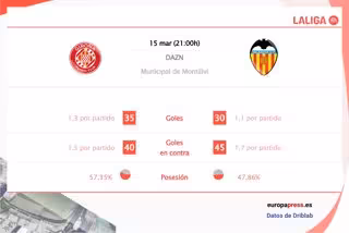 Estadísticas previa Girona vs Valencia. - EPDATA