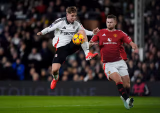 Archivo - 26 January 2025, United Kingdom, London: Fulham's Emile Smith Rowe (L) and Manchester United's Matthijs de Ligt battle for the ball during the English Premier League soccer match between Fullham F.C and Manchester United at Craven Cottage. Photo - Bradley Collyer/PA Wire/dpa - Archivo