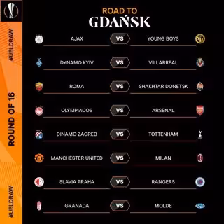Entre las eliminatorias destaca el duelo entre dos campeones europeos, el Manchester United y el AC Milan. Las eliminatorias se disputarán los jueves 11 y 18 de marzo en diferentes horarios (18.55 y 21 horas).