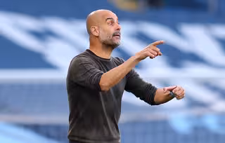 27 September 2020, England, Manchester: Manchester City manager Pep Guardiola gestures from the touchline during the English Premier League soccer match between Manchester City and Leicester City at the Etihad Stadium. Photo: Catherine Ivill/PA Wire/dpa