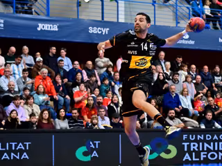 Ferrán Solé realiza un lanzamiento en un partido de la selección española de balonmano - RFEBM/JL RECIO