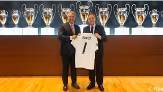 Tras finalizar el tour cultural del feudo madridista, el presidente del Real Madrid le obsequió con una camiseta del equipo blanco que llevaba su nombre y el dorsal número 1 y una réplica en plata del Santiago Bernabéu.