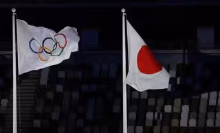Archivo - 23 July 2021, Japan, Tokyo: The Olympic flag flies next to the Japanese flag during the opening ceremony of the Tokyo 2020 Olympic Games at the Olympic Stadium. The ceremony is attended by only 950 VIPs due to the coronavirus pandemic. Photo: - Jan Woitas/dpa-Zentralbild/dpa - Archivo