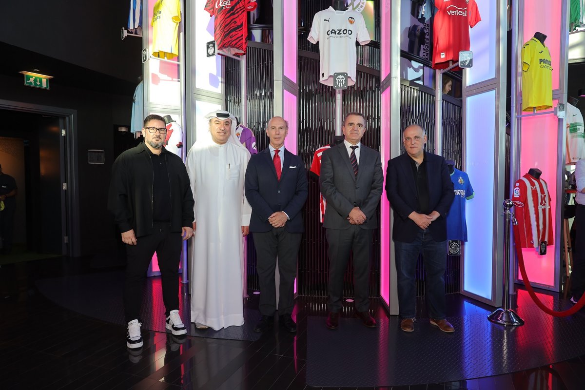 Javier Tebas junto a José Manuel Franco, presidente del CSD, Javier Carbajosa Sánchez, Embajador de España en Catar; Omar Alfardan, presidente del Grupo Alfardan y el chef Dani Garcia
