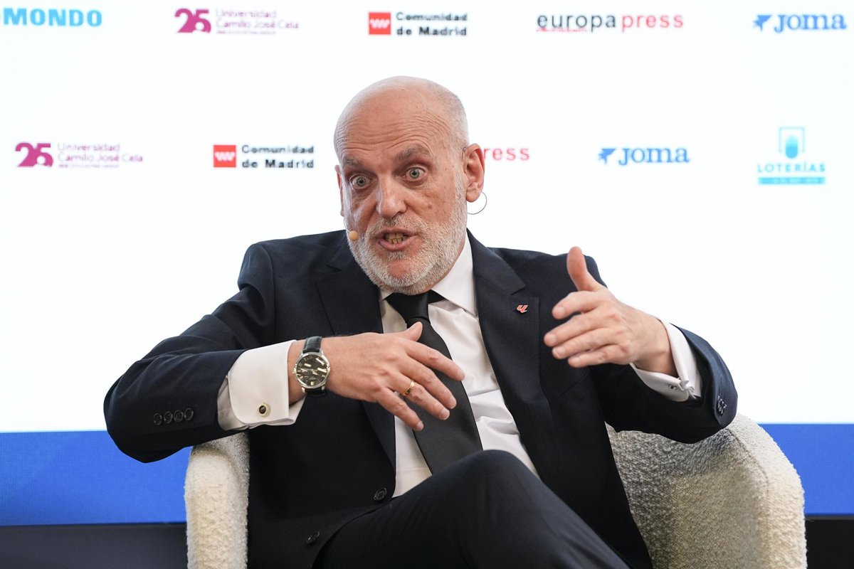 Archivo - Javier Tebas, President of LaLiga, during the Desayunos Deportivos Europa Press with Javier Tebas, President of LaLiga, at Camilo Jose Cela University on January 13, 2026, in Madrid, Spain. - Oscar J. Barroso / AFP7 / Europa Press - Archivo