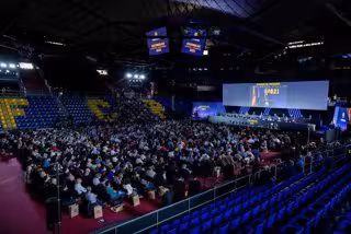 Imagen de la Asamblea de Socios Compromisarios del FC Barcelona en el Palau Blaugrana