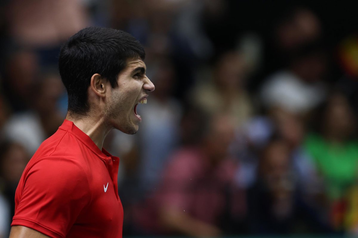 Archivo - Carlos Alcaraz of Spain celebrates the victory against Soonwoo Kwon of Korea during the Davis Cup by Rakuten 2022, Finals Group B, tennis match 2 played between Spain and Korea at Fuente de San Luis pavilion on September 18, 2022, in Valencia,