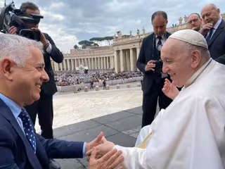 El doctor José María Villalón, jefe de los servicios médicos del Atlético de Madrid, con el Papa Francisco.