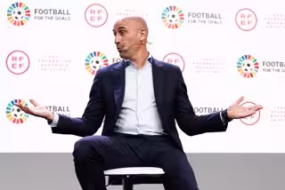 Archivo - Luis Rubiales, President of Spanish Football Federation RFEF, attends during the presentation of the alliance with the UN of the commitment to human rights and sustainability by joining the #FootballForTheGoals initiative at Ciudad del Futbol - Oscar J. Barroso / AFP7 / Europa Press - Archivo