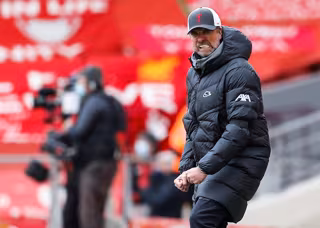 10 April 2021, United Kingdom, Liverpool: Liverpool's manager Jurgen Klopp cheers after the final whistle of the English Premier League soccer match between Liverpool and Aston Villa at Anfield. Photo: Darren Staples/CSM via ZUMA Wire/dpa