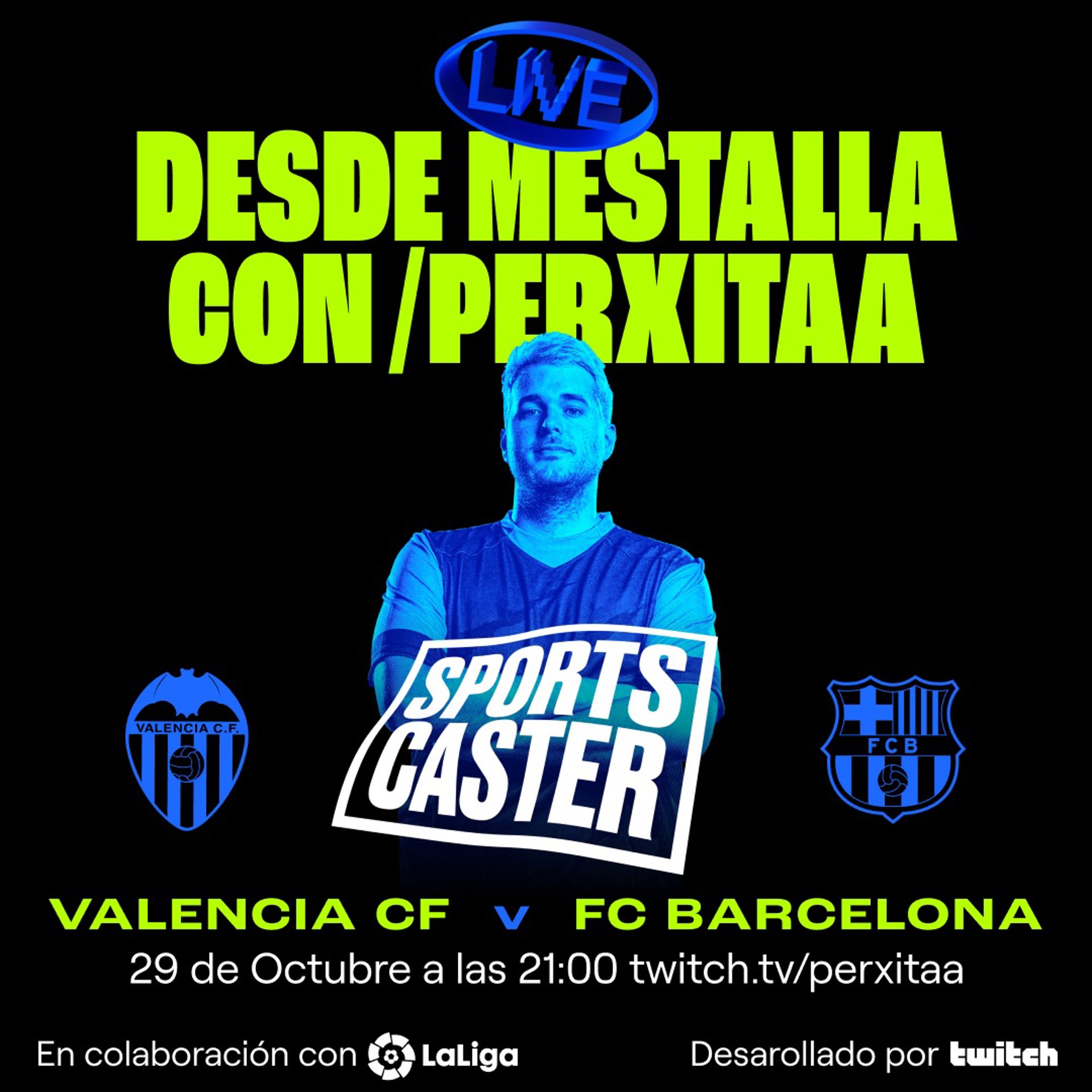 Imagen promocional anunciando al 'streamer' de 'Twitch' Perxitaa para ofrecer contenido en directo del Valencia-FC Barcelona de LaLiga Santander 2022-2023