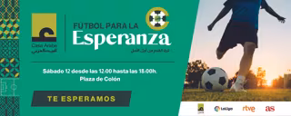 LaLiga y Casa Árabe organizan 'Fútbol para la Esperanza: El Reto', una experiencia que tendrá lugar en un recinto de césped artificial de 800 metros cuadrados en Plaza de Colón (Madrid), el 12 de noviembre, con varias zonas para poner a prueba habilidades futbolísticas con diferentes premios para los participantes.