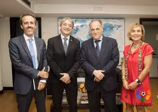 El presidente de LaLiga de fútbol en España, Javier Tebas, se reunió este lunes con el secretario Nacional del Deporte de Uruguay y actual presidente del Consejo Iberoamericano del Deporte (CID), Fernando Cáceres, con el objetivo de sentar las bases para un acuerdo de colaboración entre ambas instituciones.