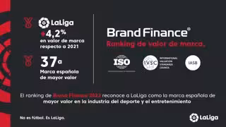 LaLiga ha consolidado una posición competitiva en la valoración establecida por Brand Finance, ya que ha experimentado un crecimiento constante desde el puesto 50 en 2019 hasta el actual 37. LaLiga se posiciona por encima de grandes marcas consolidadas de España como Telecinco, Red Eléctrica, Carbonell, San Miguel, Cruzcampo o Bankinter, entre otras.
