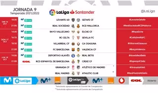 --HORARIOS DE LA JORNADA 9 DE LALIGA SANTANDER.