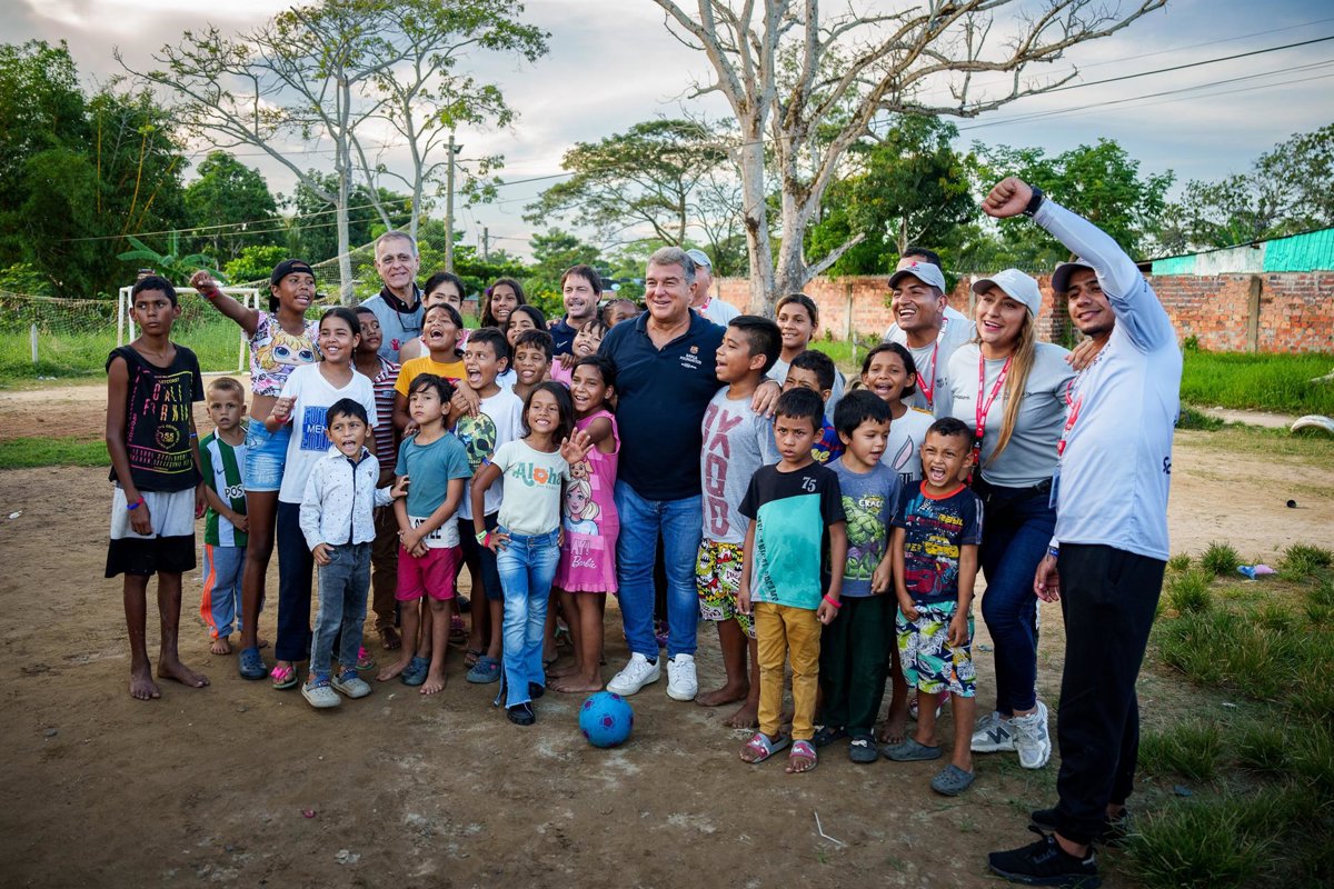 El presidente del FC Barcelona, Joan Laporta, junto a la directora general de la Fundació FC Barcelona, Marta Segú, visitaron en Arauca (Colombia) los proyectos que lleva a cabo la entidad, en los que participan más de 500 niños, niñas y adolescentes refugiados venezolanos y desplazados internos de Colombia.