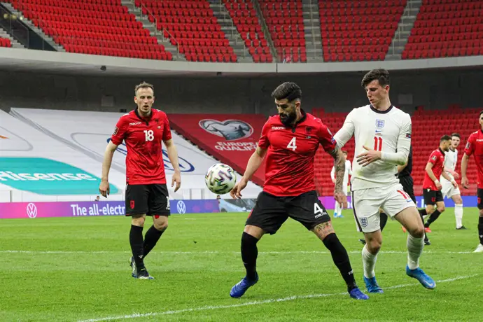 Archivo - Elseid Hysaj (ALB) and Mason Mount (ENG) during the FIFA World Cup 2022, Qualifiers, Group J football match between Albania and England on March 28, 2021 at Qemal Stafa Stadium in Tirana, Albania - Photo Nderim Kaceli / DPPI - Nderim Kaceli / DPPI / AFP7 / Europa Press