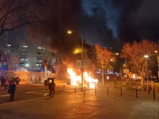 En este punto, un grupo de manifestantes ha acorralado a dos furgonetas antidisturbios, y una decena de antidisturbios ha tenido dificultades para protegerse de la multitud, además de que un agente ha caído al suelo y otro ha perdido el casco, aunque poco después lo ha recuperado.