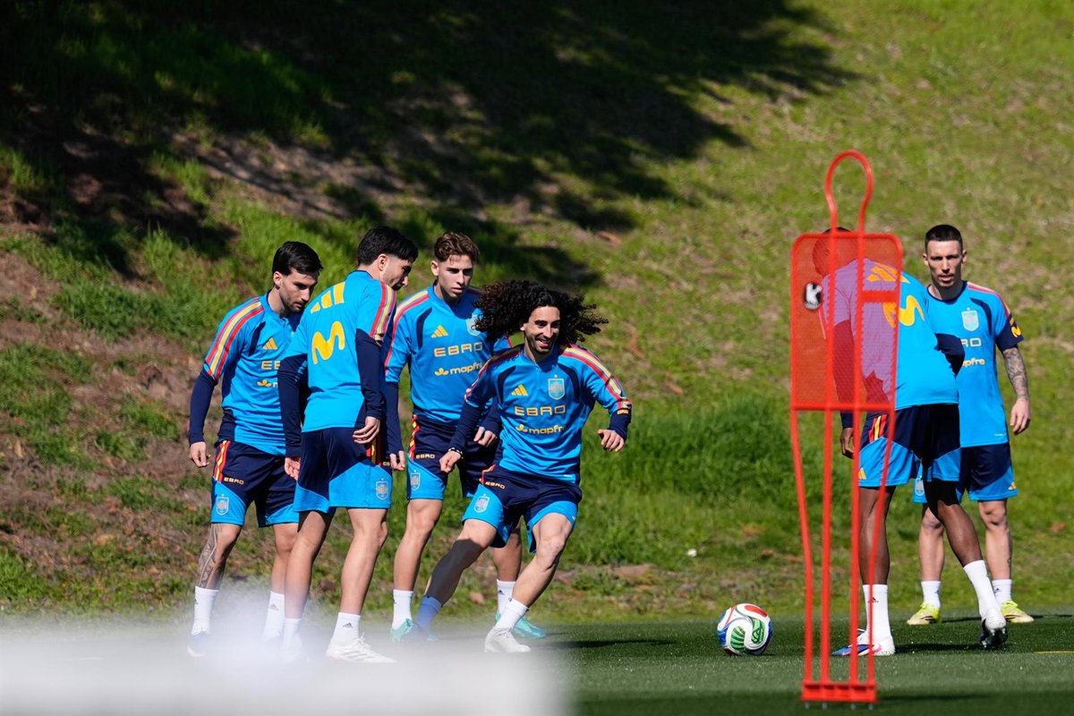Marc Cucurella during the training session of Spain Team ahead of the International Friendly match against Serbia at Ciudad del Futbol on March 24, 2026, in Las Rozas, Madrid, Spain. - Dennis Agyeman / AFP7 / Europa Press