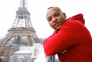 Archivo - Ray Zapata poses for photo in front of Eiffel Tower during the visit of the Iberia Team Talento a Bordo to Paris less than two hundred days before the start of the Paris 24 Olympic Games on January 13, 2024 in Paris, France.