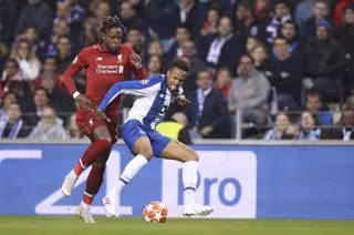 17 April 2019, Portugal, Porto: Porto's Eder MilitAo (R) and Liverpool's Divock Origi battle for the ball during the UEFAChampions League quarter-final second leg soccer match between Liverpool and Porto at the Estadio do Dragao. Photo: F¡bio Poo/Atla - F¡bio Poo/Atlantico Press / DPA - Archivo