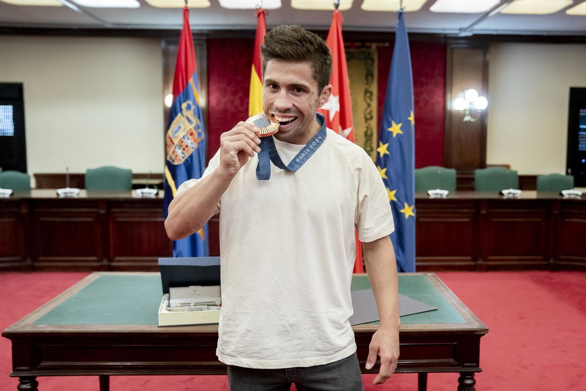 Archivo - El primer medallista olímpico de la comitiva española de los Juegos Olímpicos de París 2024, Fran Garrigós, posa con su medalla durante un encuentro con el alcalde de Móstoles, Manuel Bautista, en el Ayuntamiento de Móstoles, a 1 de agosto de 20 - A. Pérez Meca - Europa Press - Archivo