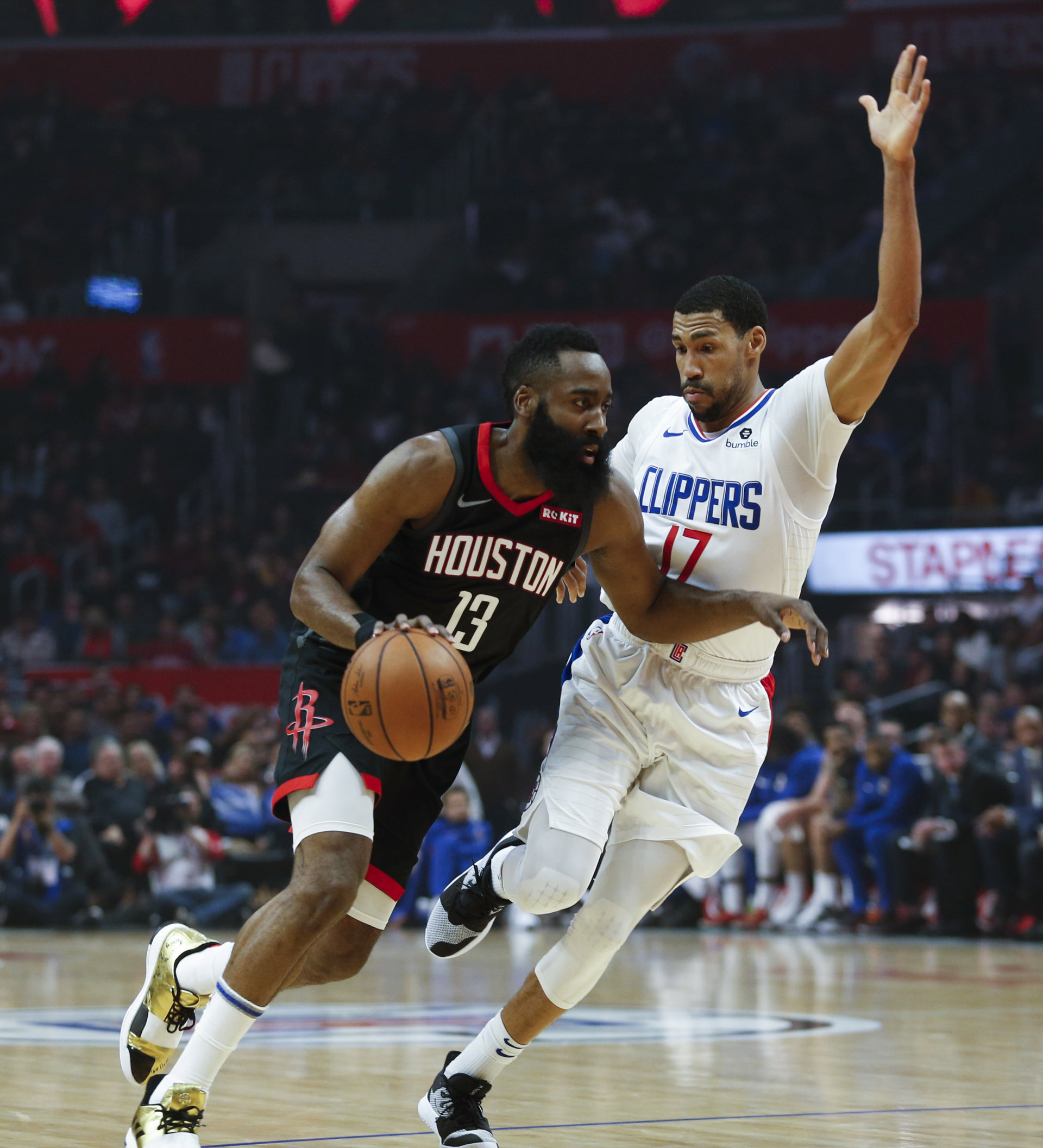 03 April 2019, US, Los Angeles: Houston Rockets' James Harden (L) and Los Angeles Clippers' Garrett Temple in action during the NBA basketball match between Los Angeles Clippers and Houston Rockets at the Staples Centre. Photo: Ringo Chiu/ZUMA Wire/dpa - Ringo Chiu/ZUMA Wire/dpa - Archivo