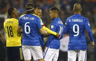 En el segundo encuentro dentro del Grupo C ante Colombia, el delantero del FC Barcelona se vio en medio de la trifulca con la que terminó el partido. En esa trifulca el árbitro chileno Enrique Osses expulsó al atacante brasileño y al colombiano Carlos Bacca, también sancionado de manera provisional. Sin embargo, Neymar sumó además una amarilla ya en la primera mitad, la cual es la segunda en el torneo y por lo tanto tendría a su vez un partido de suspensión.