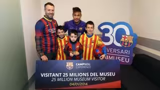 El jugador del FC Barcelona Neymar ha sido el anfitrión de los visitantes número 25 millones del Museo del club blaugrana, situado en las instalaciones del Camp Nou, y ha recibido este jueves a Àlex Jiménez y sus hijos mayores, Estanis y Dídac, que pudieron fotografiarse con el crack brasileño como premio a convertirse en los visitantes número 25 millones del recinto, inaugurado en 1984.