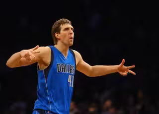 Con 15 puntos conseguidos anoche en el Barclays Center, incluidos tres del disparo que acertó con 34 segundos por jugar, Nowitzki contribuyó a que su equipo ligara su sexta victoria en fila, para llegar a 26 en la temporada, a cambio de 10 derrotas.