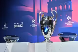 HANDOUT - 14 December 2020, Switzerland, Nyon: The UEFA Champions League trophy stands on a podium before the start of the draw for the round of 16 of The UEFA Champions League at UEFA headquarters. Photo: Harold Cunningham/UEFA/dpa - ATTENTION: editori - Harold Cunningham/UEFA/dpa - Archivo