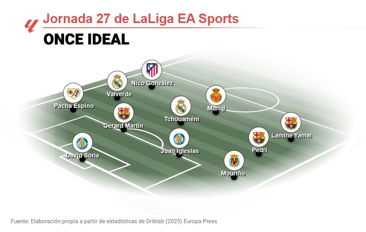 Once ideal de EP Deportes de la jornada 27 de LaLiga EA Sports. - EPDATA