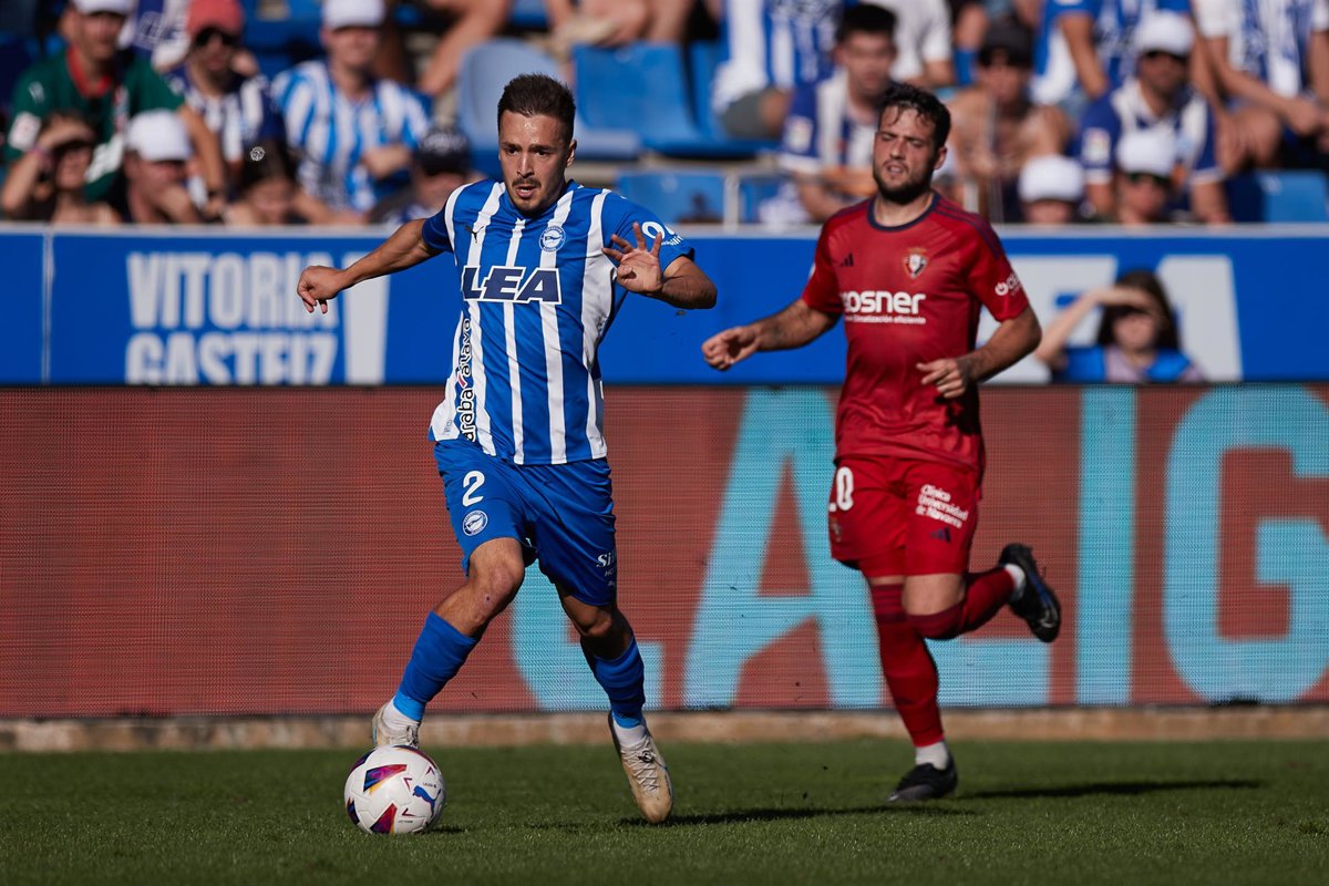Archivo - Andoni Gorosabel of Deportivo Alaves competes for the ball with Jose Manuel Arnaiz of CA Osasuna during the LaLiga EA Sports match between Deportivo Alaves and CA Osasuna at Mendizorroza on October 1, 2023, in Vitoria, Spain. - Ricardo Larreina / Afp7 / Europa Press - Archivo