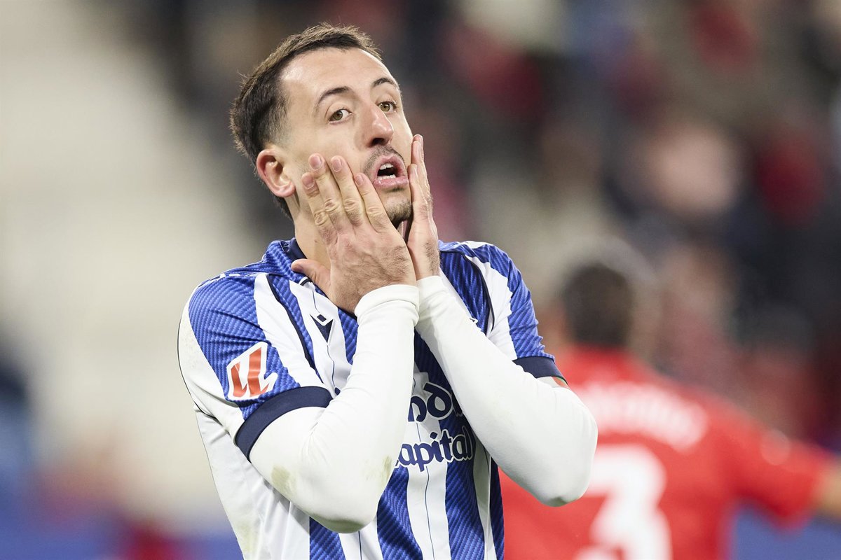 Mikel Oyarzabal of Real Sociedad reacts during the LaLiga EA Sports match between CA Osasuna and Real Sociedad at El Sadar on November 22, 2025, in Pamplona, Spain. - Ricardo Larreina / AFP7 / Europa Press