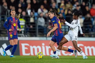Patricia Guijarro of FC Barcelona and Linda Caicedo of Real Madrid compete for the ball during the Spanish Women League, Liga F, football match played between Real Madrid and FC Barcelona at Alfredo Di Stefano stadium on March 29, 2026, in Valdebebas, Mad - Dennis Agyeman / AFP7 / Europa Press