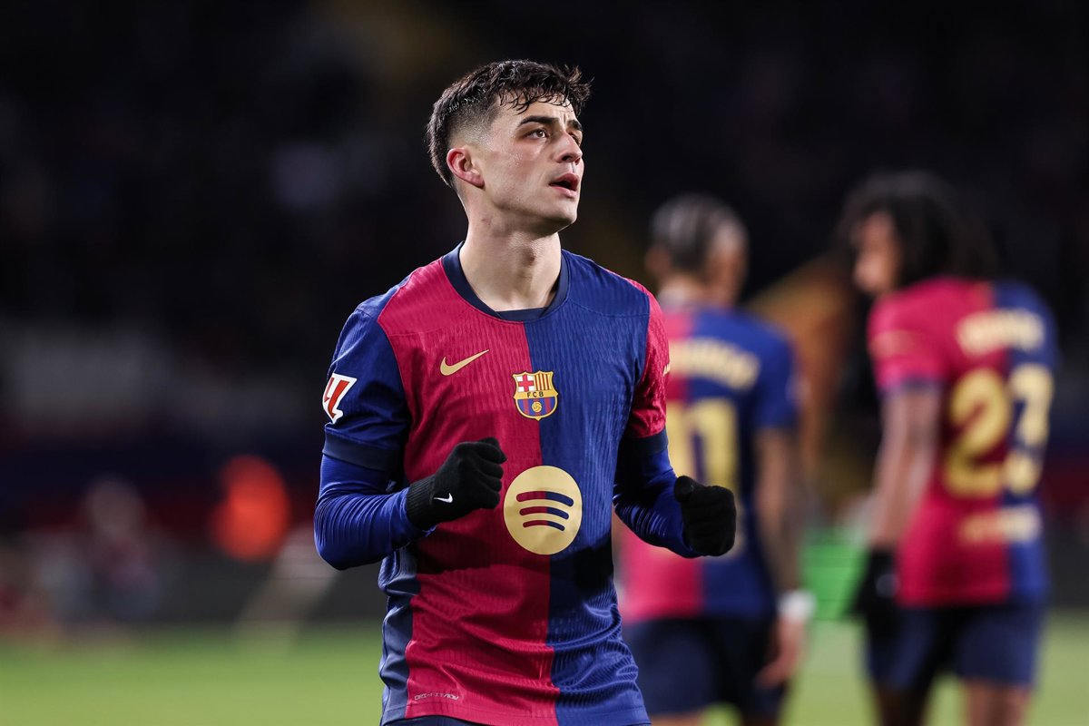 Pedro Gonzalez Pedri of FC Barcelona celebrates a goal during the Spanish league, La Liga EA Sports, football match played between FC Barcelona and Atletico de Madrid at Estadio Olimpico de Montjuic on December 21, 2024 in Barcelona, Spain. - Javier Borrego / AFP7 / Europa Press