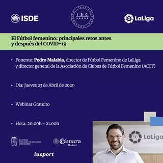 El Director de Fútbol Femenino de LaLiga, Pedro Malabia, analizará este jueves (20:00 horas) los principales retos del fútbol femenino antes y después de la crisis sanitaria y económica provocada por la COVID-19 en el webinar organizado por el Instituto Superior de Derecho y Economía (ISDE).