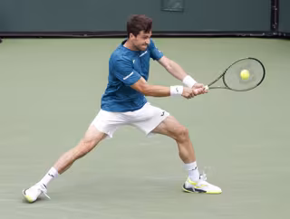 Archivo - 11 March 2023, US, Indian Wells: Spanish tennis player Pedro Martinez in action against Canada's Felix Auger-Aliassime during their Men's singles round of 64 match of the Indian Wells Masters Tennis tournament. Photo: Charles Baus/CSM via ZUMA